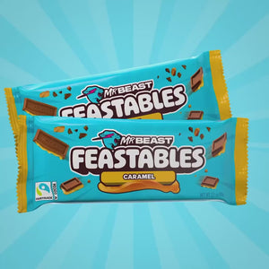 MrBeast Feastables Caramel 60g är en mjölkchokladkaka fylld med mjuk och krämig karamell. Skapad av YouTube-stjärnan MrBeast kombinerar denna choklad enkel premiumkvalitet med en rik och balanserad smakprofil.